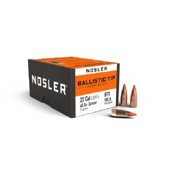 Nosler Ballistic Tip Varmint bullets thrive on ultra-high velocity loads, yet will go the distance with spectacular results all the way down to the lowest practical velocity levels. Fast or slow, near or far, no matter what rifle/cartridge combination you’re shooting or what varmint you’re shooting at, Nosler Ballistic Tip delievers.