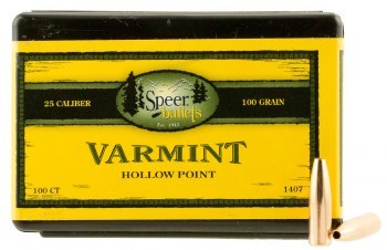 Speer offers a variety of reloading bullets ideal for hunters, plinkers and varminters. Speer Varmint Hollow Point bullets feature a hollow cavity at the point, which upon impact is forced opened with rapid expansion. The Result is less penetration but tremendous damage due to the larger diameter of the bullet. These bullets are ideally suited for varmint hunting applications. This is not loaded ammunition.